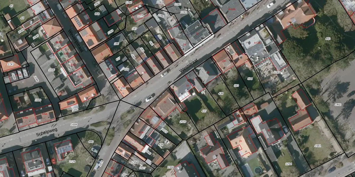 Het perceel waarop Weststraat 19 staat heeft een oppervlakte van 555 m². Dit is een groot perceel. De perceeloppervlakte wordt geregistreerd door het Kadaster. Gedetailleerde informatie over de maten van dit perceel kunt u vinden in het rapport Kadastrale kaart met maatvoering van Weststraat 19.