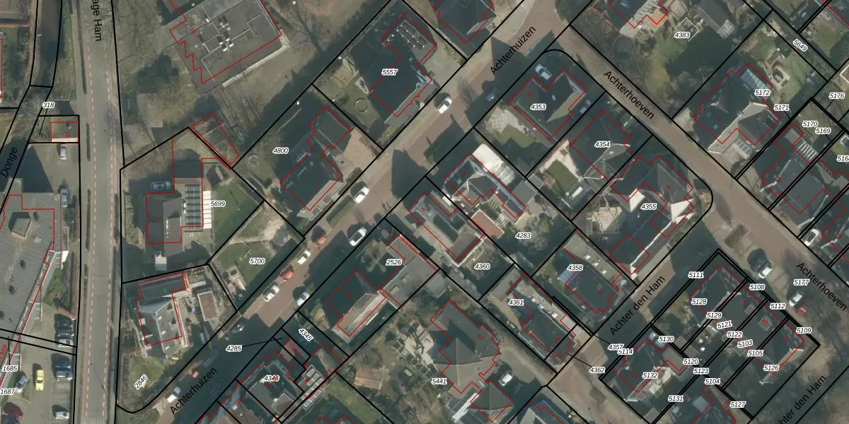 Achterhuizen 4 is gelegen op kadastraal perceel DGN01B4360. Deze kadastrale aanduiding is uniek en wordt gebruikt door het Kadaster om eigendomsrechten en andere zakelijke rechten vast te leggen. Het perceel maakt onderdeel uit van de kadastrale gemeente Dongen.
