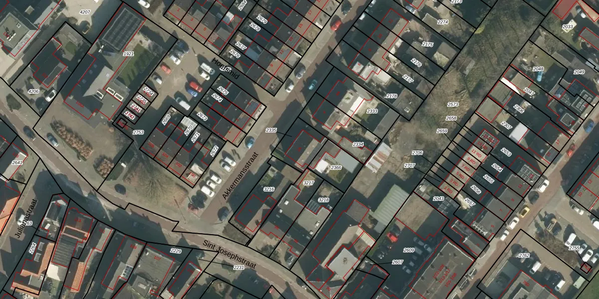Gebruik de zoekbalk of klik op een perceel voor informatie over de adressen binnen dit perceel.