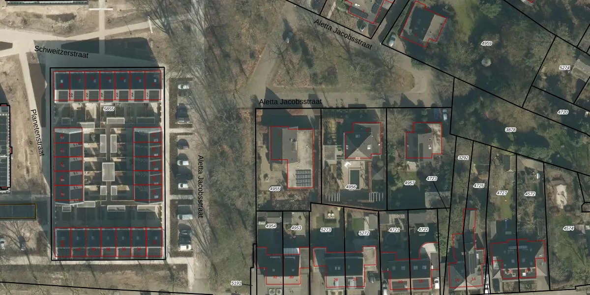 Het perceel waarop Aletta Jacobsstraat 2 staat heeft een oppervlakte van 764 m². Dit is een groot perceel. De perceeloppervlakte wordt geregistreerd door het Kadaster. Gedetailleerde informatie over de maten van dit perceel kunt u vinden in het rapport Kadastrale kaart met maatvoering van Aletta Jacobsstraat 2.