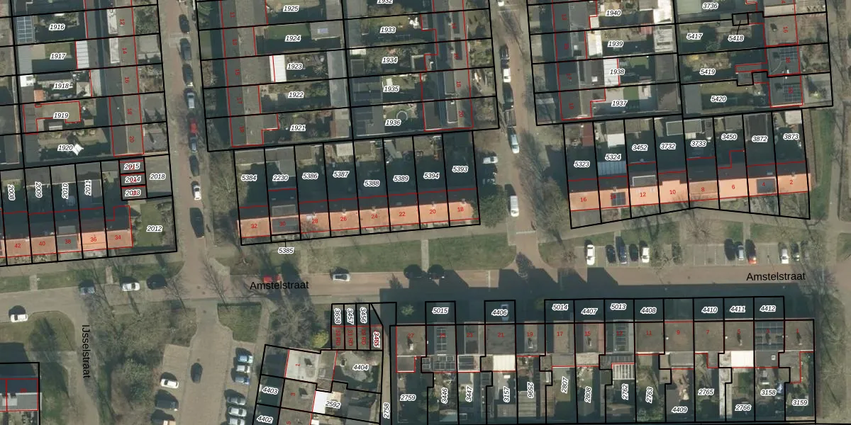 Het perceel waarop Amstelstraat 20 staat heeft een oppervlakte van 155 m². Dit is een middelgroot perceel. De perceeloppervlakte wordt geregistreerd door het Kadaster. Gedetailleerde informatie over de maten van dit perceel kunt u vinden in het rapport Kadastrale kaart met maatvoering van Amstelstraat 20.