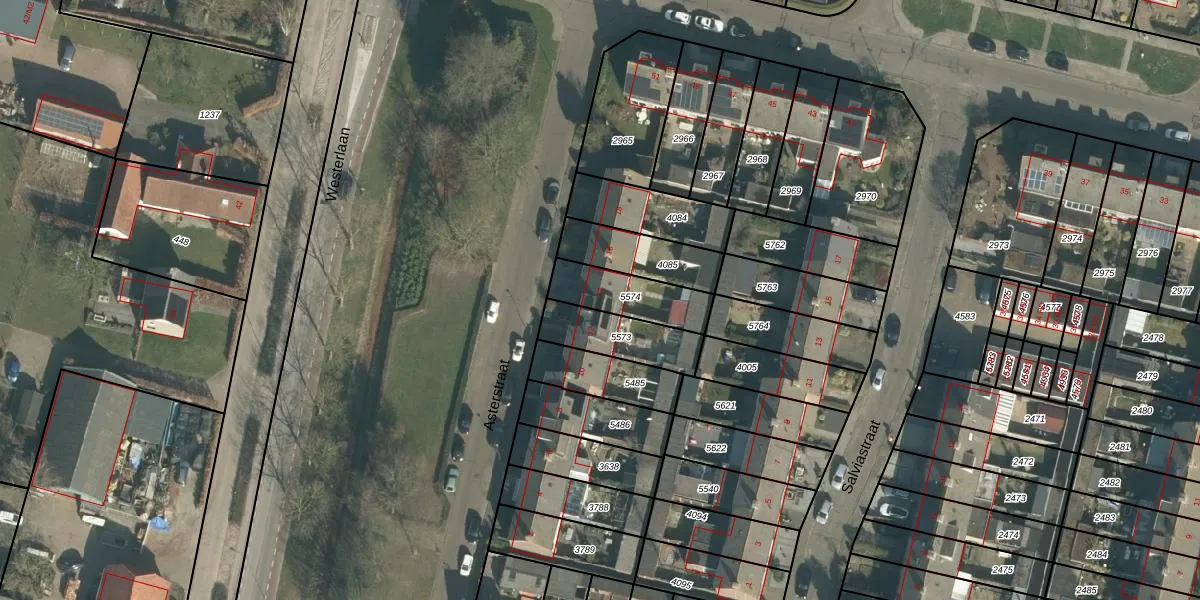 Het perceel waarop Asterstraat 14 staat heeft een oppervlakte van 191 m². Dit is een middelgroot perceel. De perceeloppervlakte wordt geregistreerd door het Kadaster. Gedetailleerde informatie over de maten van dit perceel kunt u vinden in het rapport Kadastrale kaart met maatvoering van Asterstraat 14.