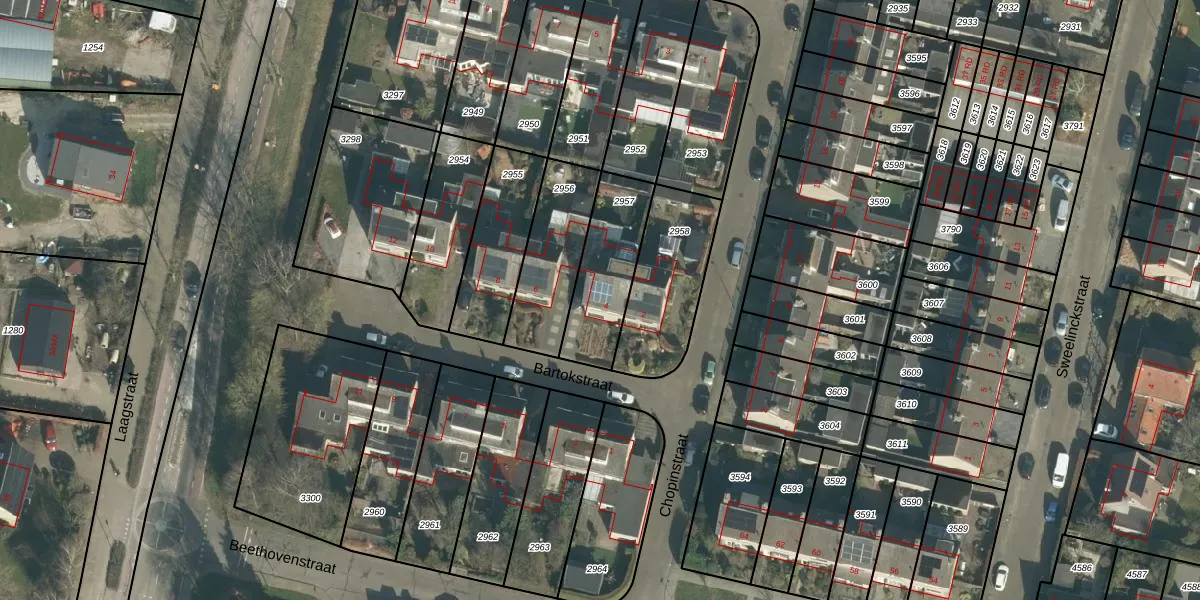 Het perceel waarop Bartokstraat 4 staat heeft een oppervlakte van 295 m². Dit is een middelgroot perceel. De perceeloppervlakte wordt geregistreerd door het Kadaster. Gedetailleerde informatie over de maten van dit perceel kunt u vinden in het rapport Kadastrale kaart met maatvoering van Bartokstraat 4.