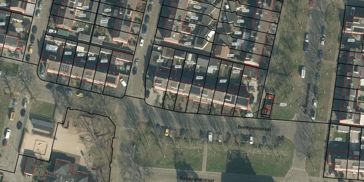 Beethovenstraat 12 is gelegen op kadastraal perceel DGN01A2900. Deze kadastrale aanduiding is uniek en wordt gebruikt door het Kadaster om eigendomsrechten en andere zakelijke rechten vast te leggen. Het perceel maakt onderdeel uit van de kadastrale gemeente Dongen.