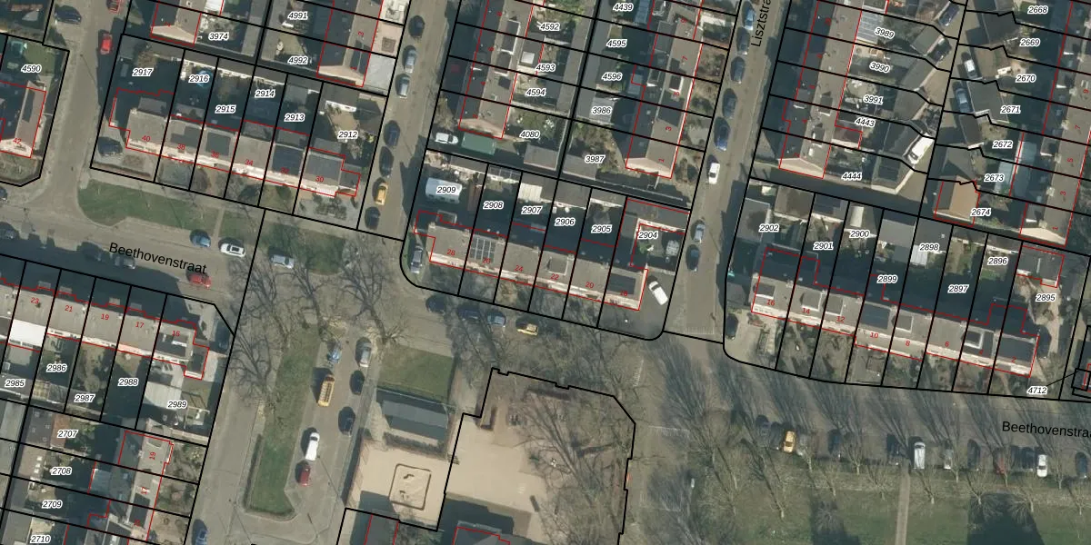 Het perceel waarop Beethovenstraat 22 staat heeft een oppervlakte van 163 m². Dit is een middelgroot perceel. De perceeloppervlakte wordt geregistreerd door het Kadaster. Gedetailleerde informatie over de maten van dit perceel kunt u vinden in het rapport Kadastrale kaart met maatvoering van Beethovenstraat 22.