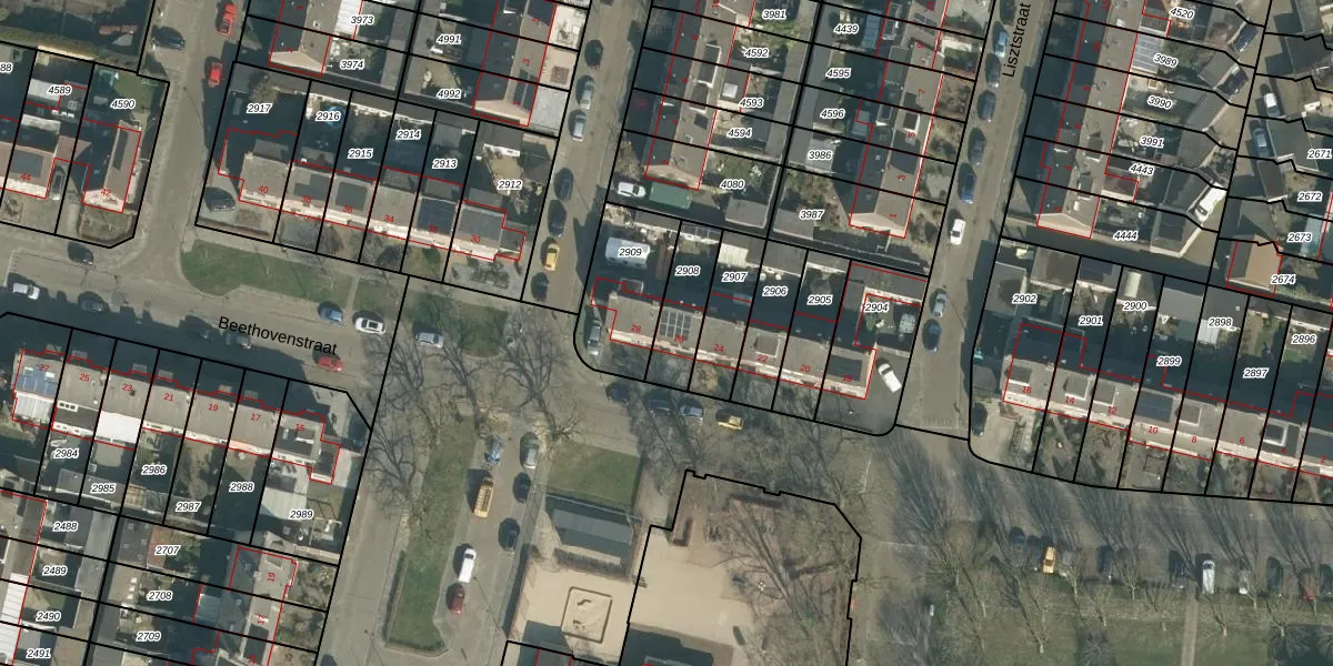Het perceel waarop Beethovenstraat 26 staat heeft een oppervlakte van 163 m². Dit is een middelgroot perceel. De perceeloppervlakte wordt geregistreerd door het Kadaster. Gedetailleerde informatie over de maten van dit perceel kunt u vinden in het rapport Kadastrale kaart met maatvoering van Beethovenstraat 26.