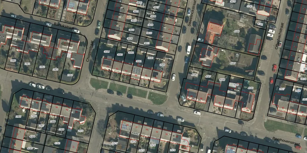 Het perceel waarop Beethovenstraat 54 staat heeft een oppervlakte van 298 m². Dit is een middelgroot perceel. De perceeloppervlakte wordt geregistreerd door het Kadaster. Gedetailleerde informatie over de maten van dit perceel kunt u vinden in het rapport Kadastrale kaart met maatvoering van Beethovenstraat 54.