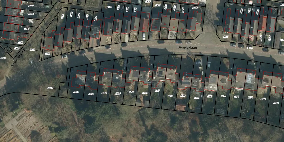 Het perceel waarop Beneluxlaan 12 staat heeft een oppervlakte van 335 m². Dit is een groot perceel. De perceeloppervlakte wordt geregistreerd door het Kadaster. Gedetailleerde informatie over de maten van dit perceel kunt u vinden in het rapport Kadastrale kaart met maatvoering van Beneluxlaan 12.