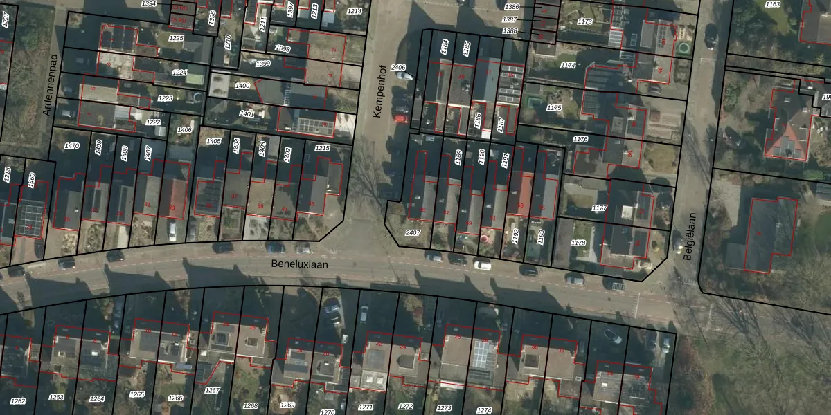 Het perceel waarop Beneluxlaan 45 staat heeft een oppervlakte van 251 m². Dit is een middelgroot perceel. De perceeloppervlakte wordt geregistreerd door het Kadaster. Gedetailleerde informatie over de maten van dit perceel kunt u vinden in het rapport Kadastrale kaart met maatvoering van Beneluxlaan 45.