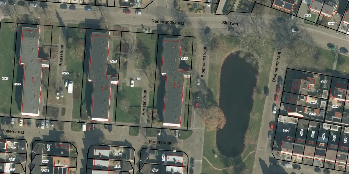 Het perceel waarop Bloemaertstraat 39 staat heeft een oppervlakte van 1099 m². Dit is een zeer groot perceel. De perceeloppervlakte wordt geregistreerd door het Kadaster. Gedetailleerde informatie over de maten van dit perceel kunt u vinden in het rapport Kadastrale kaart met maatvoering van Bloemaertstraat 39.
