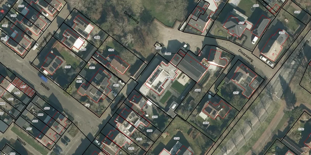 Het perceel waarop Boterweide 8 staat heeft een oppervlakte van 880 m². Dit is een groot perceel. De perceeloppervlakte wordt geregistreerd door het Kadaster. Gedetailleerde informatie over de maten van dit perceel kunt u vinden in het rapport Kadastrale kaart met maatvoering van Boterweide 8.