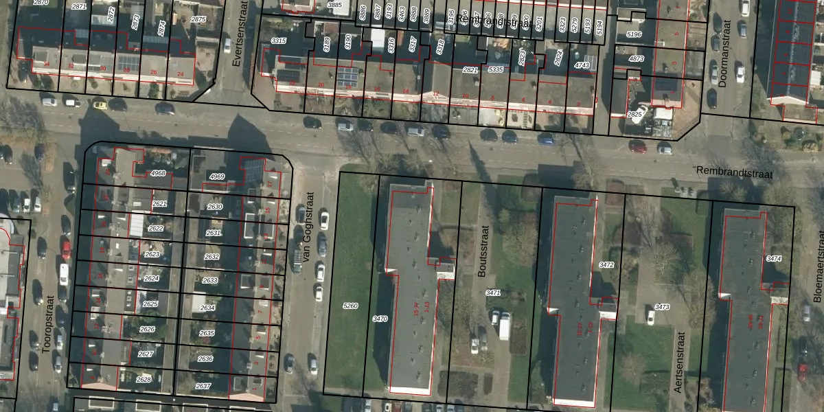 Het perceel waarop Boutsstraat 27 staat heeft een oppervlakte van 1101 m². Dit is een zeer groot perceel. De perceeloppervlakte wordt geregistreerd door het Kadaster. Gedetailleerde informatie over de maten van dit perceel kunt u vinden in het rapport Kadastrale kaart met maatvoering van Boutsstraat 27.