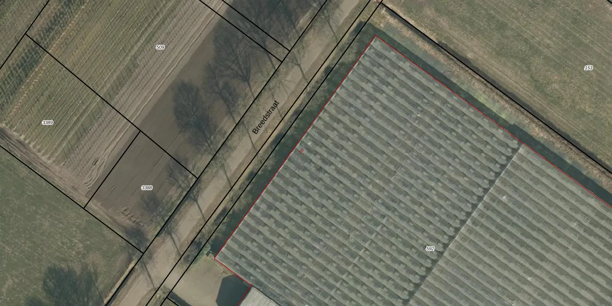 Breedstraat 20 is gelegen op kadastraal perceel DGN01M592. Deze kadastrale aanduiding is uniek en wordt gebruikt door het Kadaster om eigendomsrechten en andere zakelijke rechten vast te leggen. Het perceel maakt onderdeel uit van de kadastrale gemeente Dongen.