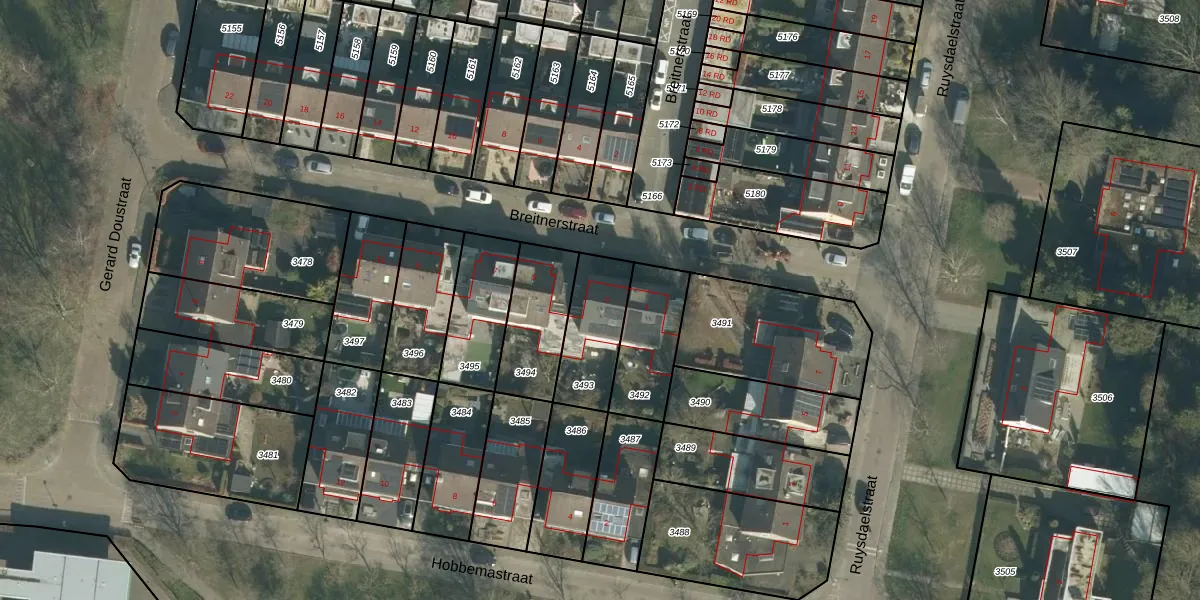 Het perceel waarop Breitnerstraat 3 staat heeft een oppervlakte van 241 m². Dit is een middelgroot perceel. De perceeloppervlakte wordt geregistreerd door het Kadaster. Gedetailleerde informatie over de maten van dit perceel kunt u vinden in het rapport Kadastrale kaart met maatvoering van Breitnerstraat 3.