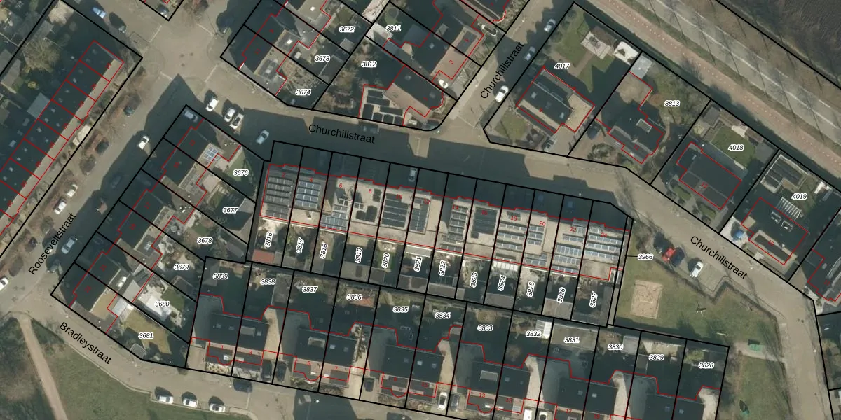 Het perceel waarop Churchillstraat 12 staat heeft een oppervlakte van 206 m². Dit is een middelgroot perceel. De perceeloppervlakte wordt geregistreerd door het Kadaster. Gedetailleerde informatie over de maten van dit perceel kunt u vinden in het rapport Kadastrale kaart met maatvoering van Churchillstraat 12.