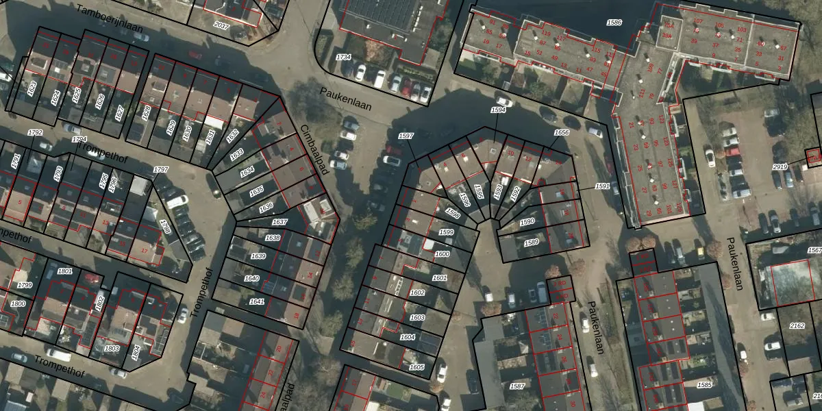 Het perceel waarop Cimbaalpad 1 staat heeft een oppervlakte van 96 m². Dit is een klein perceel. De perceeloppervlakte wordt geregistreerd door het Kadaster. Gedetailleerde informatie over de maten van dit perceel kunt u vinden in het rapport Kadastrale kaart met maatvoering van Cimbaalpad 1.