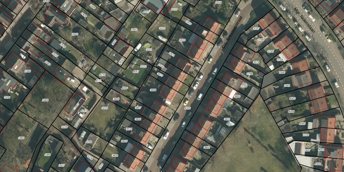 Gebruik de zoekbalk of klik op een perceel voor informatie over de adressen binnen dit perceel.
