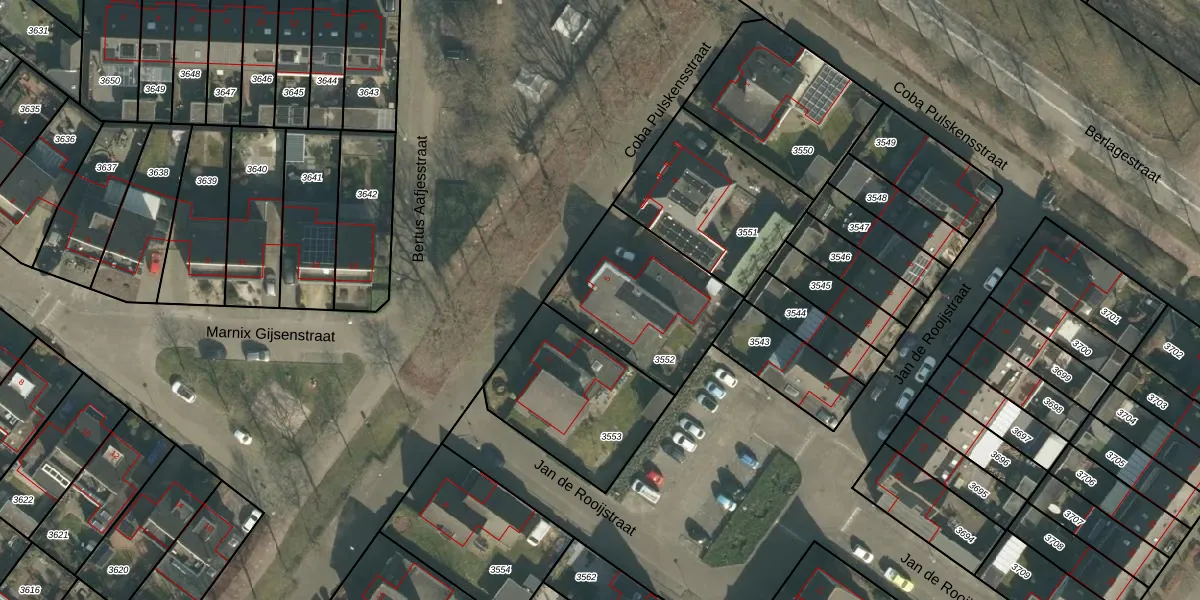 Het perceel waarop Coba Pulskensstraat 5 staat heeft een oppervlakte van 540 m². Dit is een groot perceel. De perceeloppervlakte wordt geregistreerd door het Kadaster. Gedetailleerde informatie over de maten van dit perceel kunt u vinden in het rapport Kadastrale kaart met maatvoering van Coba Pulskensstraat 5.