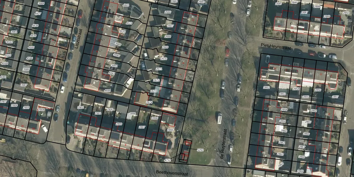 Het perceel waarop de Ruyterstraat 5 staat heeft een oppervlakte van 203 m². Dit is een middelgroot perceel. De perceeloppervlakte wordt geregistreerd door het Kadaster. Gedetailleerde informatie over de maten van dit perceel kunt u vinden in het rapport Kadastrale kaart met maatvoering van de Ruyterstraat 5.