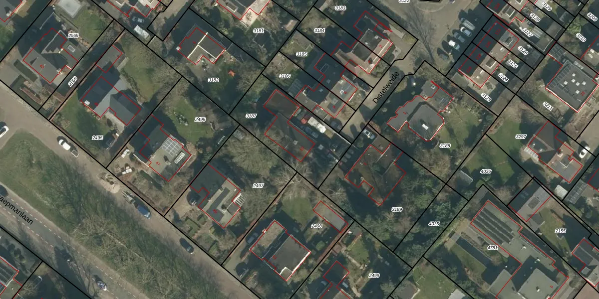 Distelweide 10 is gelegen op kadastraal perceel DGN01B3187. Deze kadastrale aanduiding is uniek en wordt gebruikt door het Kadaster om eigendomsrechten en andere zakelijke rechten vast te leggen. Het perceel maakt onderdeel uit van de kadastrale gemeente Dongen.
