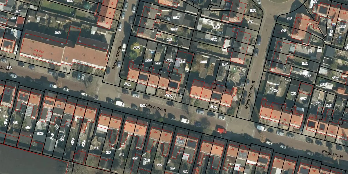 Het perceel waarop Eikenstraat 21 staat heeft een oppervlakte van 247 m². Dit is een middelgroot perceel. De perceeloppervlakte wordt geregistreerd door het Kadaster. Gedetailleerde informatie over de maten van dit perceel kunt u vinden in het rapport Kadastrale kaart met maatvoering van Eikenstraat 21.