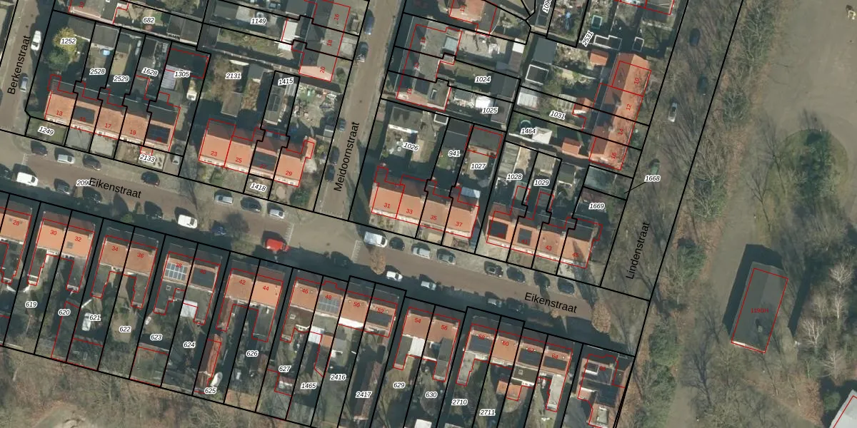 Het perceel waarop Eikenstraat 35 staat heeft een oppervlakte van 180 m². Dit is een middelgroot perceel. De perceeloppervlakte wordt geregistreerd door het Kadaster. Gedetailleerde informatie over de maten van dit perceel kunt u vinden in het rapport Kadastrale kaart met maatvoering van Eikenstraat 35.
