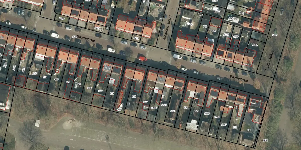 Het perceel waarop Eikenstraat 46 staat heeft een oppervlakte van 265 m². Dit is een middelgroot perceel. De perceeloppervlakte wordt geregistreerd door het Kadaster. Gedetailleerde informatie over de maten van dit perceel kunt u vinden in het rapport Kadastrale kaart met maatvoering van Eikenstraat 46.