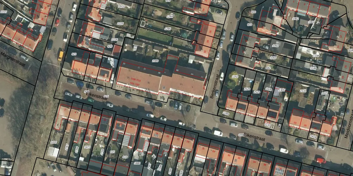 Het perceel waarop Eikenstraat 7-05 staat heeft een oppervlakte van 1847 m². Dit is een zeer groot perceel. De perceeloppervlakte wordt geregistreerd door het Kadaster. Gedetailleerde informatie over de maten van dit perceel kunt u vinden in het rapport Kadastrale kaart met maatvoering van Eikenstraat 7-05.