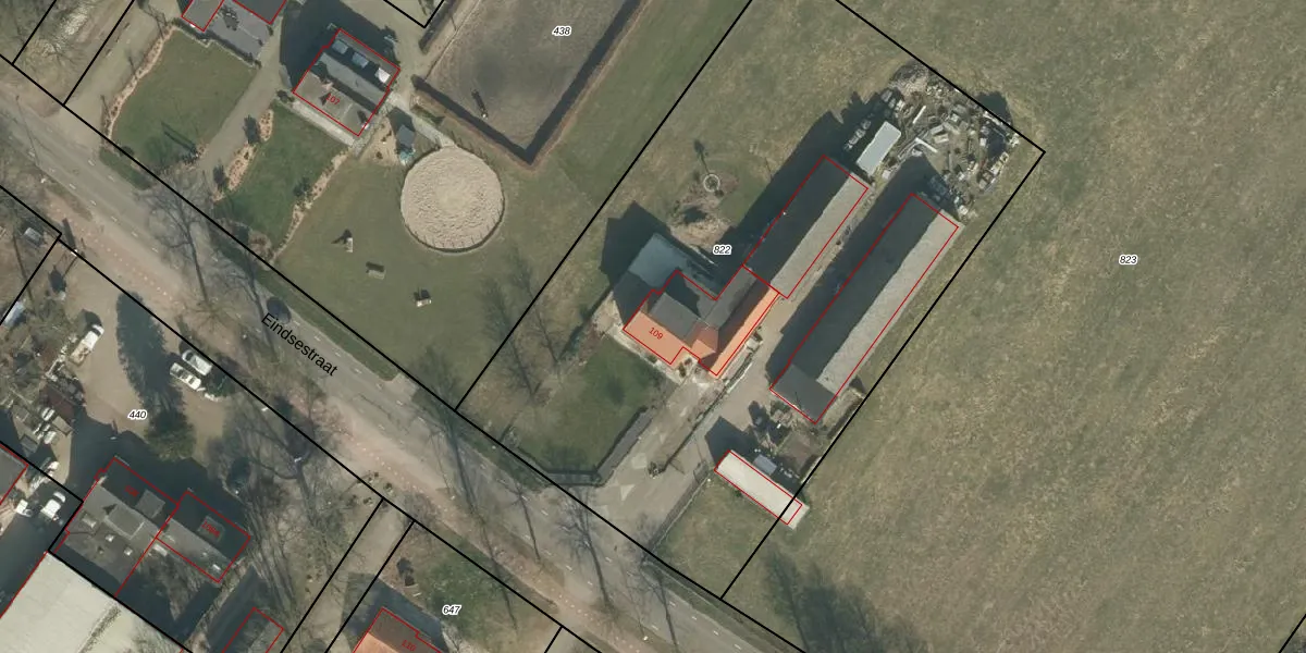 Het perceel waarop Eindsestraat 109 staat heeft een oppervlakte van 4245 m². Dit is een zeer groot perceel. De perceeloppervlakte wordt geregistreerd door het Kadaster. Gedetailleerde informatie over de maten van dit perceel kunt u vinden in het rapport Kadastrale kaart met maatvoering van Eindsestraat 109.