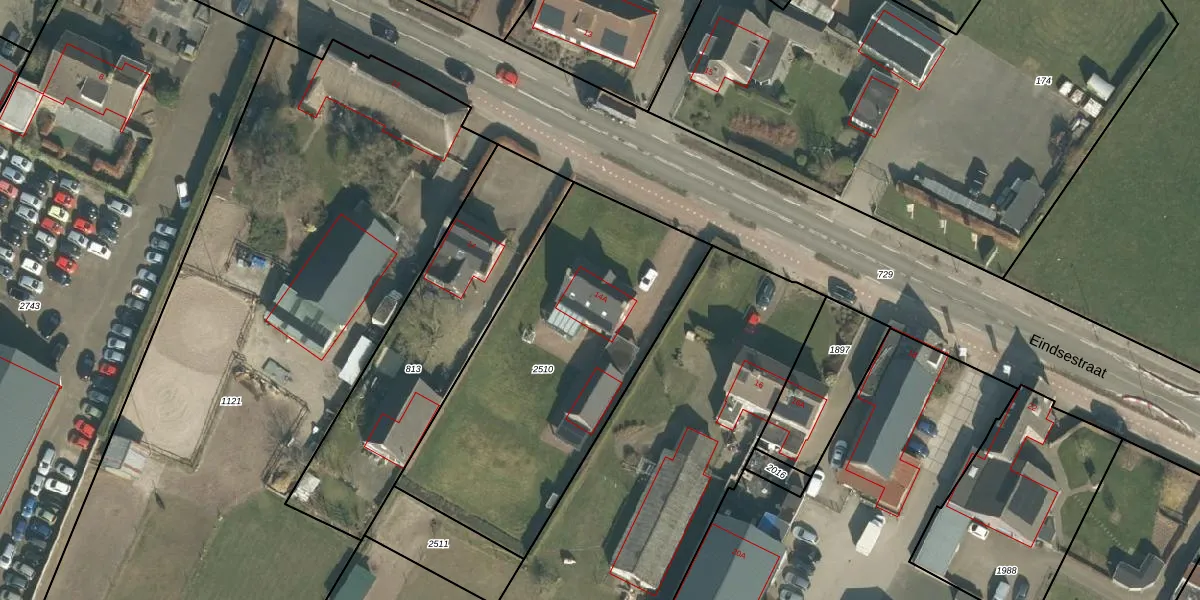 Het perceel waarop Eindsestraat 14-A staat heeft een oppervlakte van 1505 m². Dit is een zeer groot perceel. De perceeloppervlakte wordt geregistreerd door het Kadaster. Gedetailleerde informatie over de maten van dit perceel kunt u vinden in het rapport Kadastrale kaart met maatvoering van Eindsestraat 14-A.