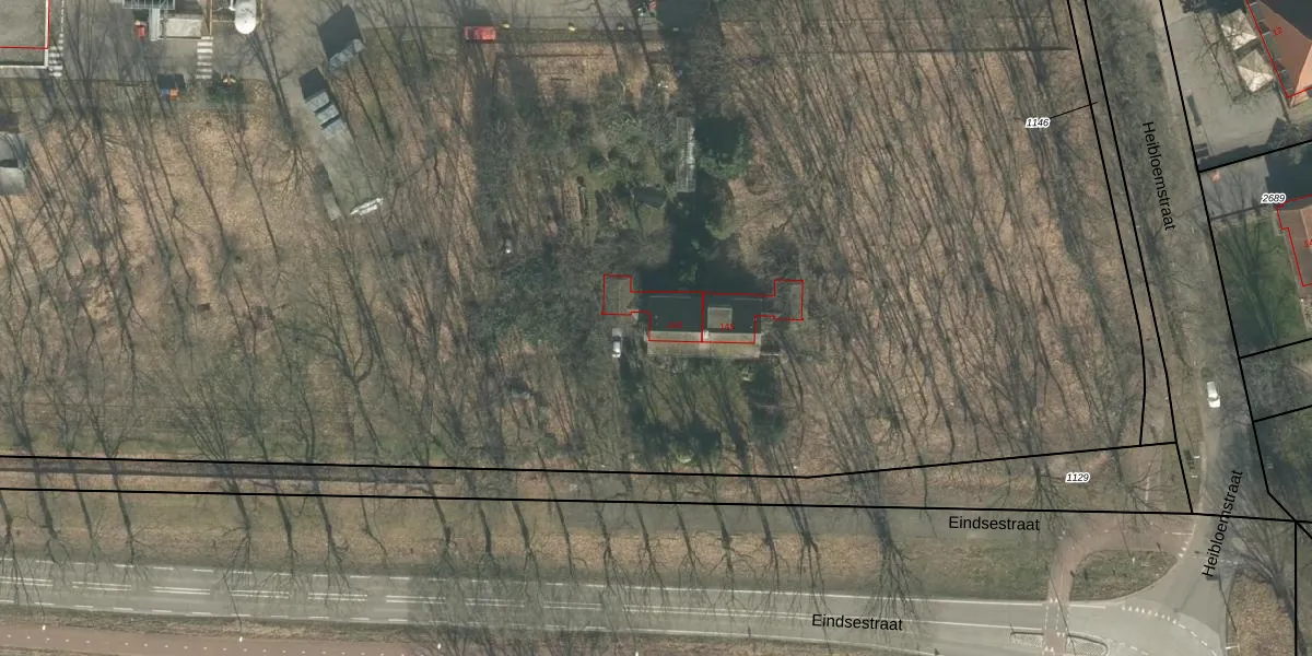 Het perceel waarop Eindsestraat 143 staat heeft een oppervlakte van 13,0 ha. Dit is een zeer groot perceel. De perceeloppervlakte wordt geregistreerd door het Kadaster. Gedetailleerde informatie over de maten van dit perceel kunt u vinden in het rapport Kadastrale kaart met maatvoering van Eindsestraat 143.
