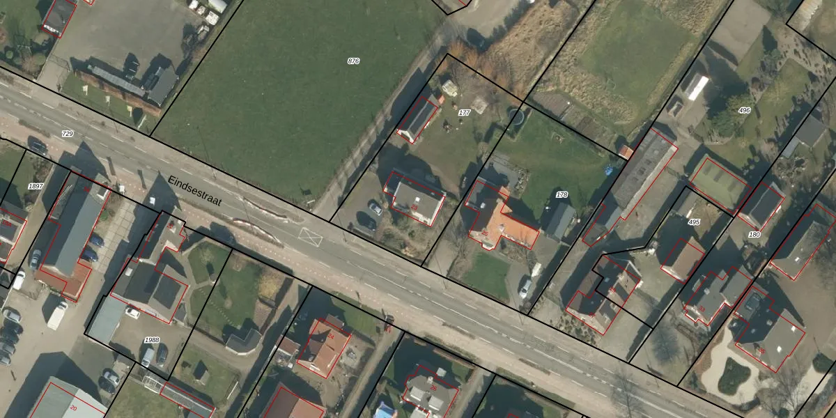 Het perceel waarop Eindsestraat 23 staat heeft een oppervlakte van 1105 m². Dit is een zeer groot perceel. De perceeloppervlakte wordt geregistreerd door het Kadaster. Gedetailleerde informatie over de maten van dit perceel kunt u vinden in het rapport Kadastrale kaart met maatvoering van Eindsestraat 23.