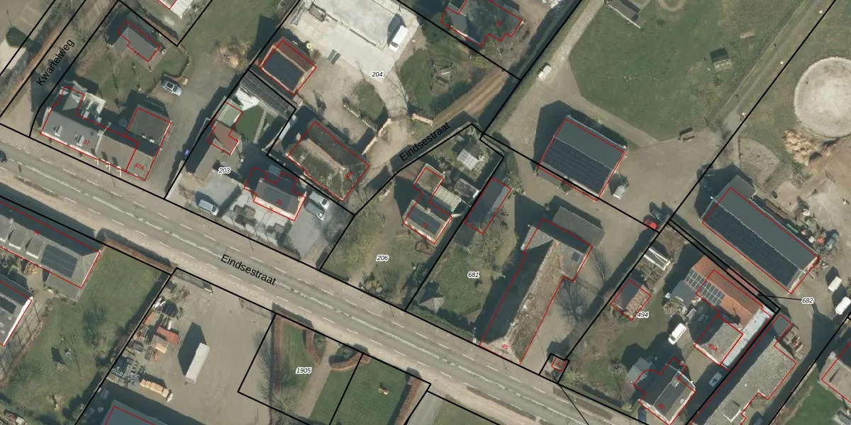 Het perceel waarop Eindsestraat 41 staat heeft een oppervlakte van 885 m². Dit is een groot perceel. De perceeloppervlakte wordt geregistreerd door het Kadaster. Gedetailleerde informatie over de maten van dit perceel kunt u vinden in het rapport Kadastrale kaart met maatvoering van Eindsestraat 41.