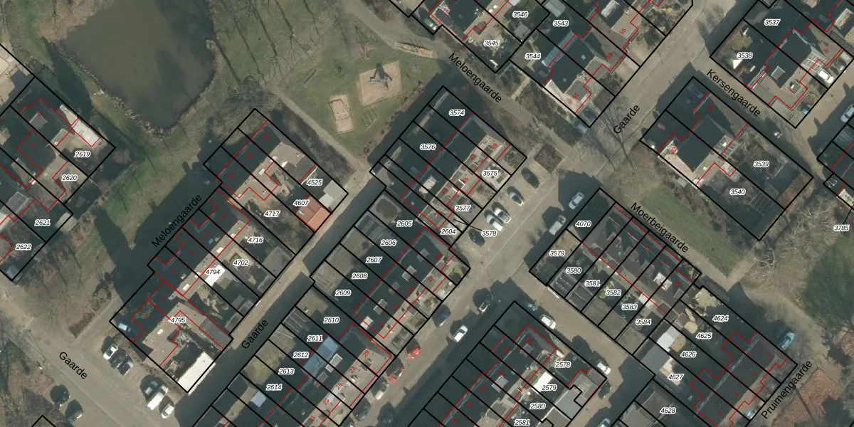 Het perceel waarop Gaarde 41 staat heeft een oppervlakte van 104 m². Dit is een middelgroot perceel. De perceeloppervlakte wordt geregistreerd door het Kadaster. Gedetailleerde informatie over de maten van dit perceel kunt u vinden in het rapport Kadastrale kaart met maatvoering van Gaarde 41.