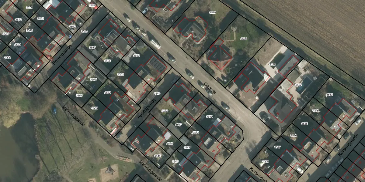 Het perceel waarop Gaarde 61 staat heeft een oppervlakte van 338 m². Dit is een groot perceel. De perceeloppervlakte wordt geregistreerd door het Kadaster. Gedetailleerde informatie over de maten van dit perceel kunt u vinden in het rapport Kadastrale kaart met maatvoering van Gaarde 61.