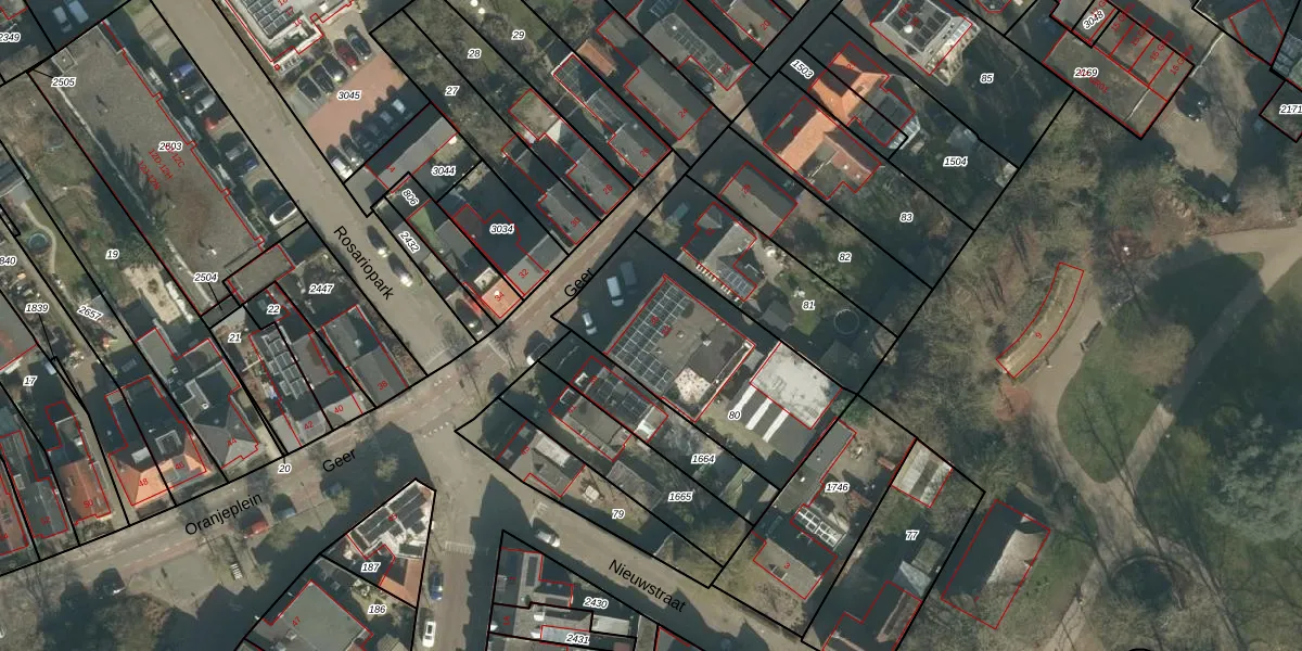 Het perceel waarop Geer 35 staat heeft een oppervlakte van 785 m². Dit is een groot perceel. De perceeloppervlakte wordt geregistreerd door het Kadaster. Gedetailleerde informatie over de maten van dit perceel kunt u vinden in het rapport Kadastrale kaart met maatvoering van Geer 35.