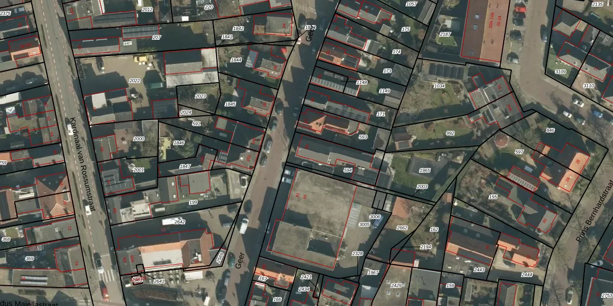 Het perceel waarop Geer 89 staat heeft een oppervlakte van 307 m². Dit is een groot perceel. De perceeloppervlakte wordt geregistreerd door het Kadaster. Gedetailleerde informatie over de maten van dit perceel kunt u vinden in het rapport Kadastrale kaart met maatvoering van Geer 89.