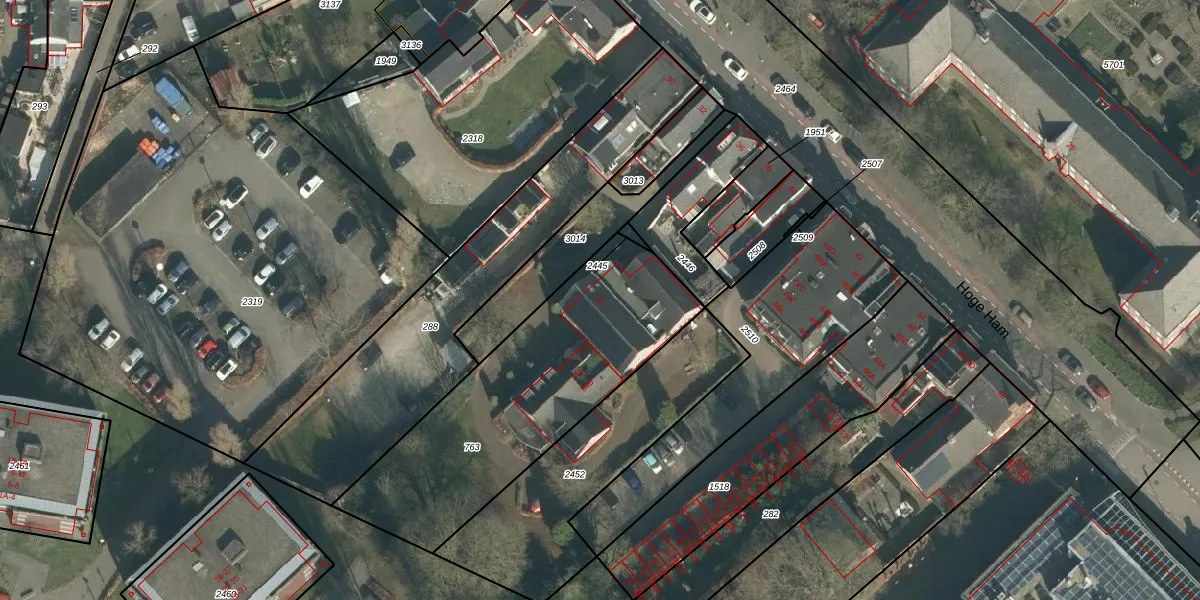 Het perceel waarop Hoge Ham 34 staat heeft een oppervlakte van 1165 m². Dit is een zeer groot perceel. De perceeloppervlakte wordt geregistreerd door het Kadaster. Gedetailleerde informatie over de maten van dit perceel kunt u vinden in het rapport Kadastrale kaart met maatvoering van Hoge Ham 34.