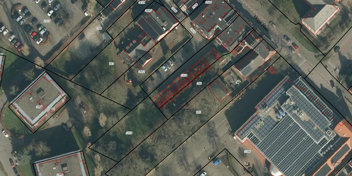 Het perceel waarop Hoge Ham 46-GR28 staat heeft een oppervlakte van 745 m². Dit is een groot perceel. De perceeloppervlakte wordt geregistreerd door het Kadaster. Gedetailleerde informatie over de maten van dit perceel kunt u vinden in het rapport Kadastrale kaart met maatvoering van Hoge Ham 46-GR28.