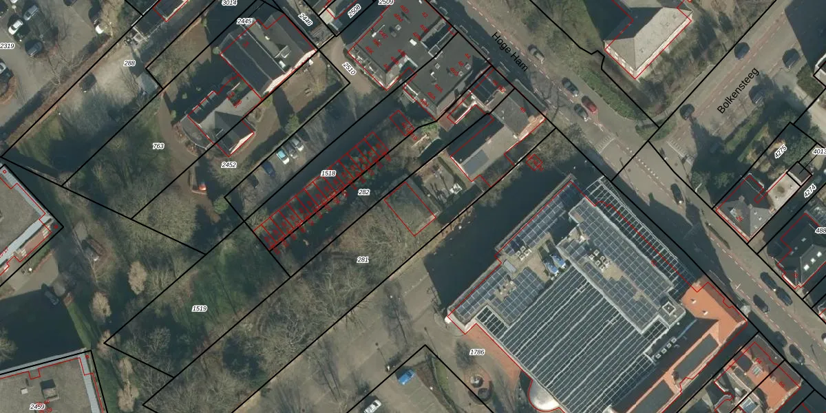 Het perceel waarop Hoge Ham 48-A staat heeft een oppervlakte van 1750 m². Dit is een zeer groot perceel. De perceeloppervlakte wordt geregistreerd door het Kadaster. Gedetailleerde informatie over de maten van dit perceel kunt u vinden in het rapport Kadastrale kaart met maatvoering van Hoge Ham 48-A.