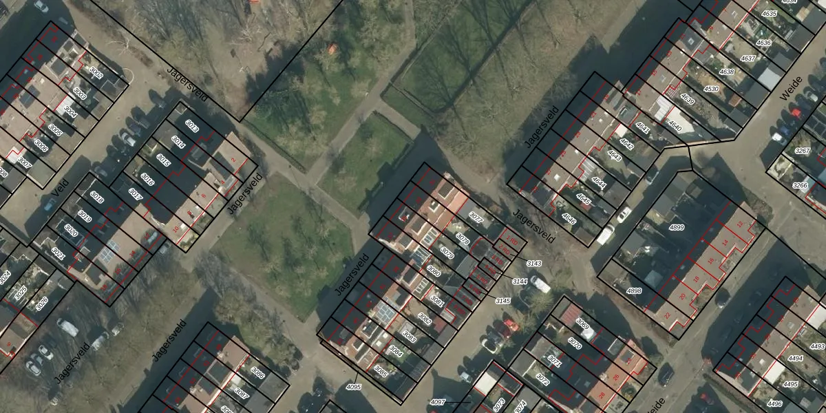 Het perceel waarop Jagersveld 33 staat heeft een oppervlakte van 158 m². Dit is een middelgroot perceel. De perceeloppervlakte wordt geregistreerd door het Kadaster. Gedetailleerde informatie over de maten van dit perceel kunt u vinden in het rapport Kadastrale kaart met maatvoering van Jagersveld 33.
