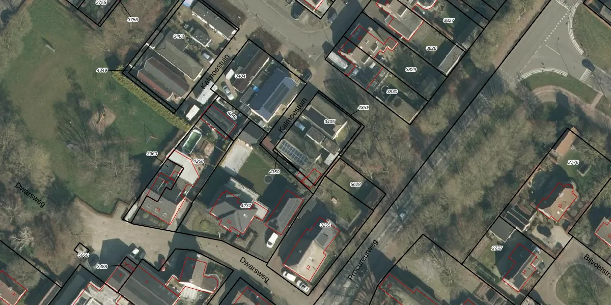 Kalmoestuin 7 is gelegen op kadastraal perceel DGN01B3405. Deze kadastrale aanduiding is uniek en wordt gebruikt door het Kadaster om eigendomsrechten en andere zakelijke rechten vast te leggen. Het perceel maakt onderdeel uit van de kadastrale gemeente Dongen.