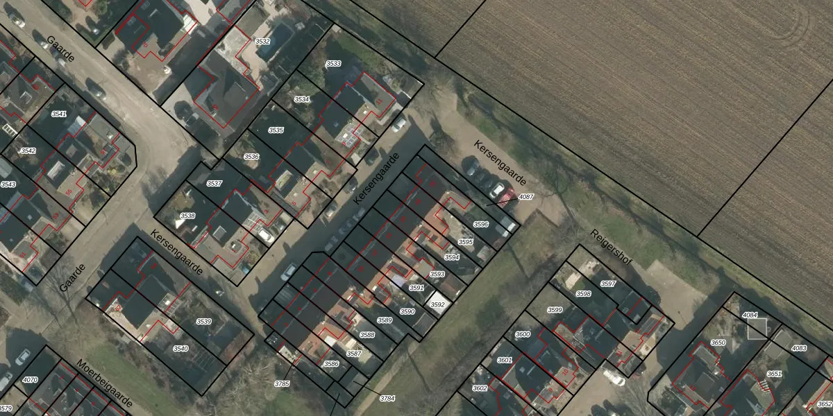 Kersengaarde 18 is gelegen op kadastraal perceel DGN01B3595. Deze kadastrale aanduiding is uniek en wordt gebruikt door het Kadaster om eigendomsrechten en andere zakelijke rechten vast te leggen. Het perceel maakt onderdeel uit van de kadastrale gemeente Dongen.