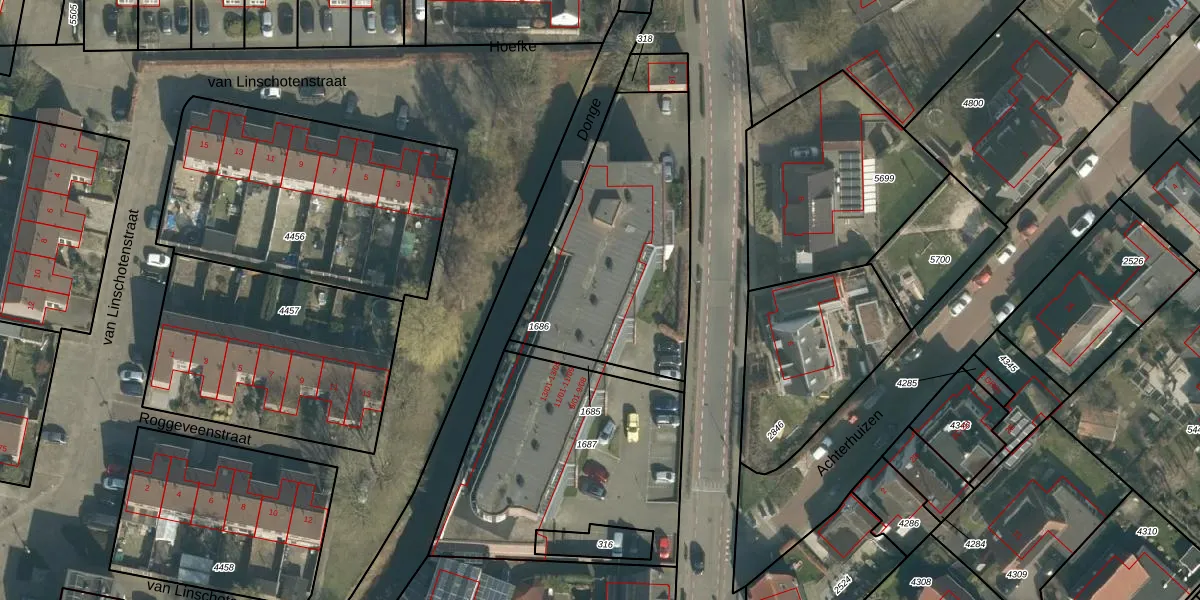 Het adres ligt op het perceel DGN01-I-1686, dat zich in de kadastrale gemeente Dongen bevindt. De gemiddelde perceelgrootte in Dongen is 2051,83 m². Dit perceel is kleiner: de perceeloppervlakte bedraagt 970 m². Het kleinste perceel in de kadastrale gemeente is 0 m² groot. De grootste perceeloppervlakte is 15,7 ha. Op het perceel liggen in totaal 9 adressen. In de Basisregistratie Kadaster (BRK) werden de grenzen van het perceel geregistreerd op 22-12-2006.