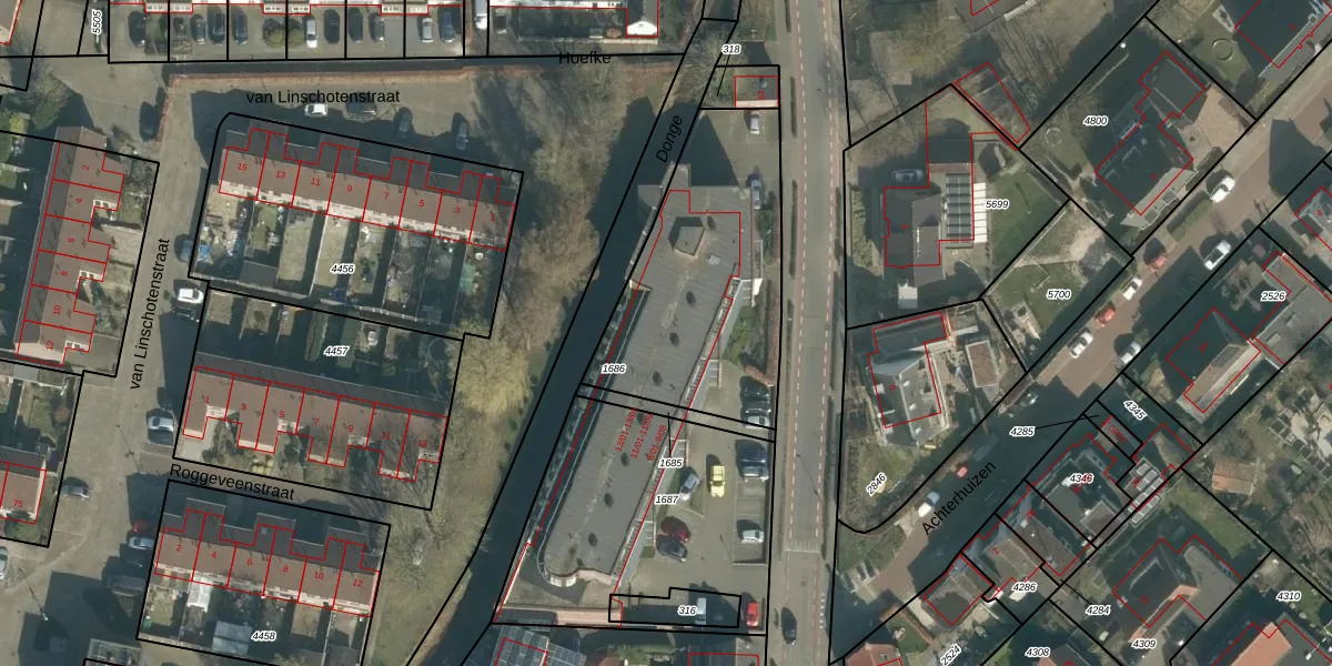 Het adres ligt op het perceel DGN01-I-1686, dat zich in de kadastrale gemeente Dongen bevindt. De gemiddelde perceelgrootte in Dongen is 2052 m². Dit perceel is kleiner: de perceeloppervlakte bedraagt 970 m². Het kleinste perceel in de kadastrale gemeente is 0 m² groot. De grootste perceeloppervlakte is 15,7 ha. Op het perceel liggen in totaal 9 adressen. De laatste wijziging in het de Basisregistratie Kadaster (BRK) was op 22-12-2006.