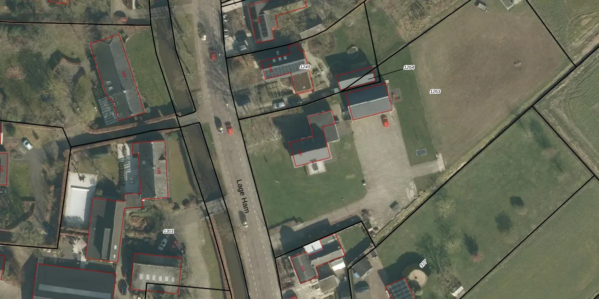 Het perceel waarop Lage Ham 160 staat heeft een oppervlakte van 4919 m². Dit is een zeer groot perceel. De perceeloppervlakte wordt geregistreerd door het Kadaster. Gedetailleerde informatie over de maten van dit perceel kunt u vinden in het rapport Kadastrale kaart met maatvoering van Lage Ham 160.