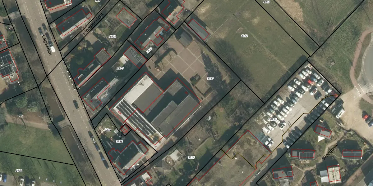 Het perceel waarop Lage Ham 50 staat heeft een oppervlakte van 2619 m². Dit is een zeer groot perceel. De perceeloppervlakte wordt geregistreerd door het Kadaster. Gedetailleerde informatie over de maten van dit perceel kunt u vinden in het rapport Kadastrale kaart met maatvoering van Lage Ham 50.