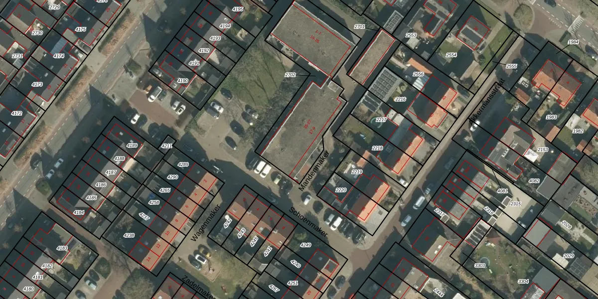 Het perceel waarop Mandenmaker 15 staat heeft een oppervlakte van 1068 m². Dit is een zeer groot perceel. De perceeloppervlakte wordt geregistreerd door het Kadaster. Gedetailleerde informatie over de maten van dit perceel kunt u vinden in het rapport Kadastrale kaart met maatvoering van Mandenmaker 15.