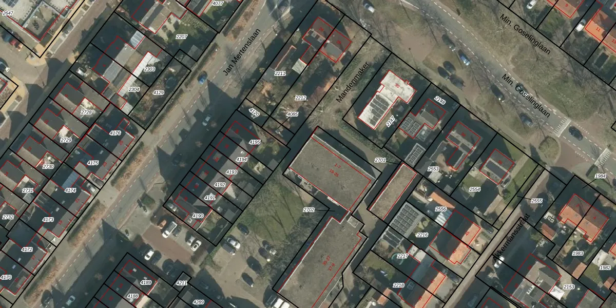 Het perceel waarop Mandenmaker 19 staat heeft een oppervlakte van 1068 m². Dit is een zeer groot perceel. De perceeloppervlakte wordt geregistreerd door het Kadaster. Gedetailleerde informatie over de maten van dit perceel kunt u vinden in het rapport Kadastrale kaart met maatvoering van Mandenmaker 19.