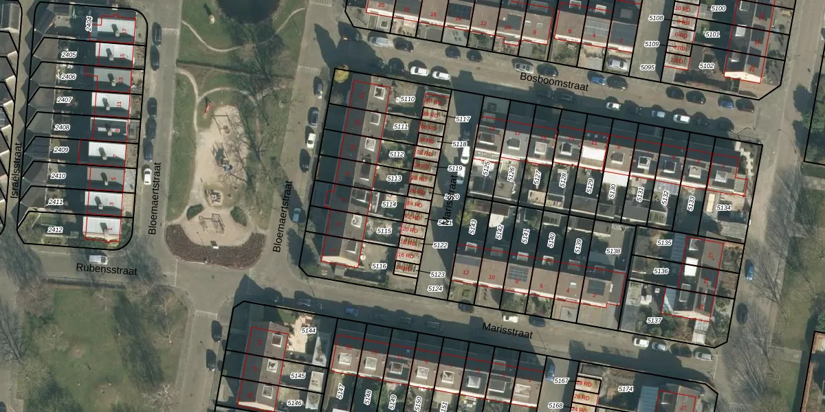 Marisstraat 24-RD is gelegen op kadastraal perceel DGN01A5114. Deze kadastrale aanduiding is uniek en wordt gebruikt door het Kadaster om eigendomsrechten en andere zakelijke rechten vast te leggen. Het perceel maakt onderdeel uit van de kadastrale gemeente Dongen.